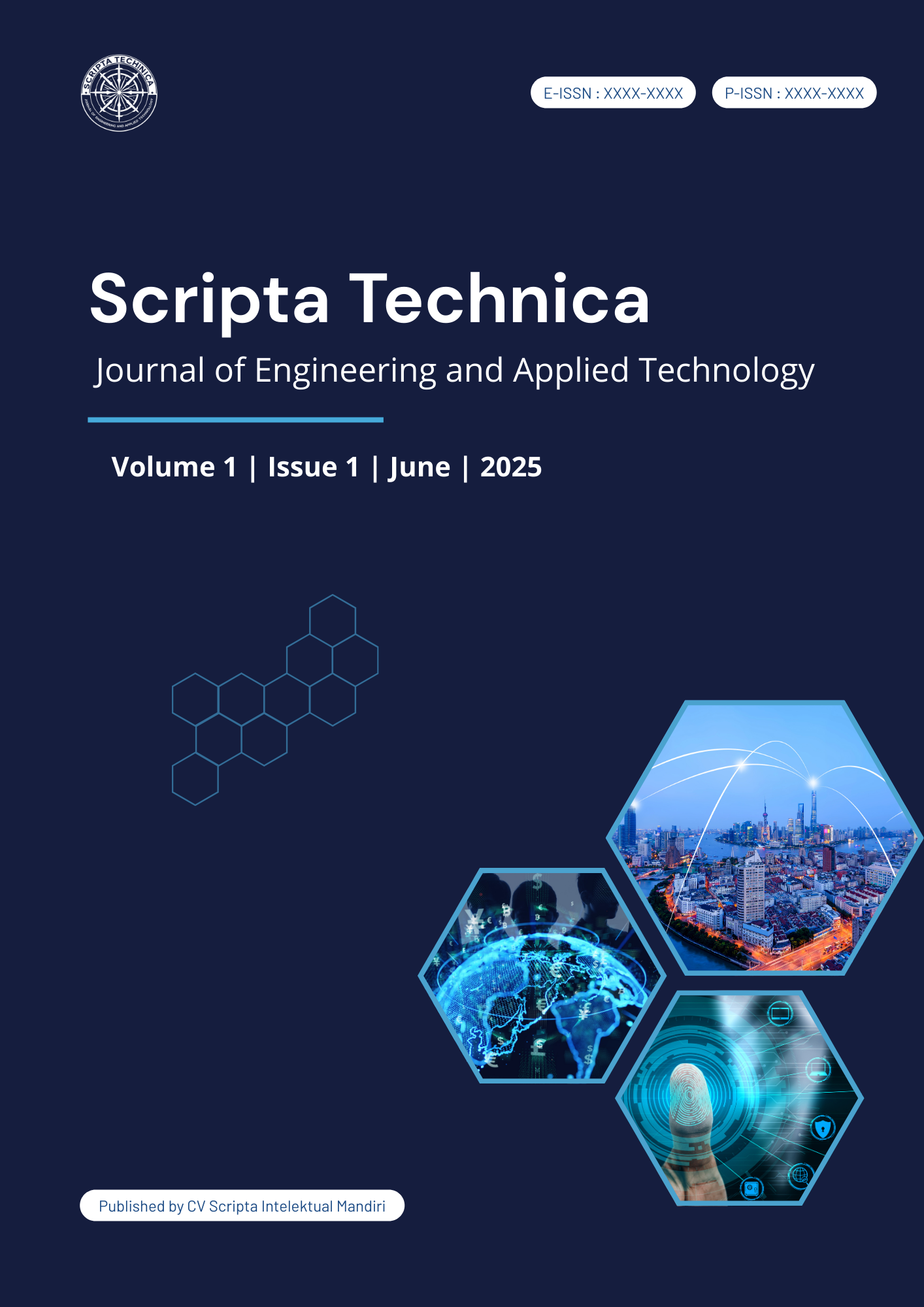 Vol. 1 No. 1 (2025)Scripta Technica: Journal of Engineering and Applied Technology is a peer-reviewed scientific journal that focuses on the dissemination of high-quality research in the fields of engineering and applied technology. It serves as an open platform for researchers, engineers, practitioners, and academics to publish innovative studies, technical developments, and theoretical contributions that address real-world engineering problems and technological advancement. The journal welcomes manuscripts in areas such as mechanical and electrical engineering, civil and environmental engineering, computer and information technology, materials science, renewable energy, automation, robotics, and other applied engineering fields. All submissions undergo a rigorous double-blind peer-review process to ensure academic integrity and scientific excellence. Scripta Technica is published biannually in June and December, promoting sustainable, practical, and forward-looking innovations that contribute to technological progress at national and international levels.